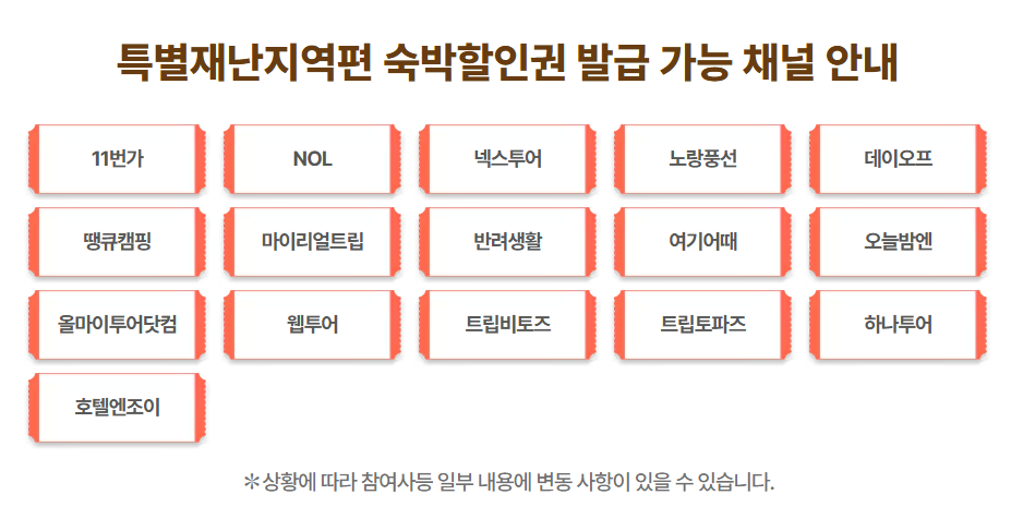 특별재난지역편 숙박할인권 발급 가능 채널 바로가기