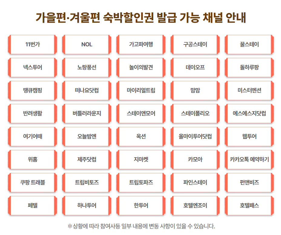 가을편·겨울편 숙박할인권 발급 가능 채널 바로가기