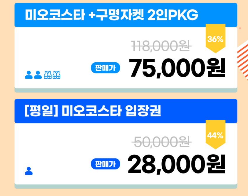 - ✔️ 40% 할인: 미오코스타존 입장권