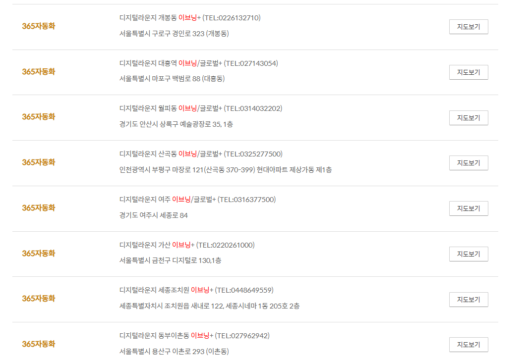 - 주말 서비스: 토요일플러스 7개 지점 오전 9시~오후 5시