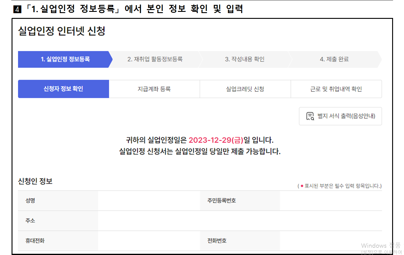 - 실업인정은 본인 직접 신청만 가능하며 대리 신청 불가