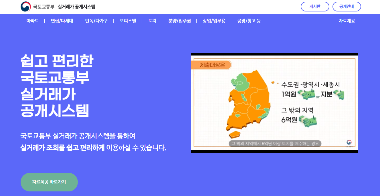 • 아파트 실거래가는 국토교통부 사이트에서 무료 확인 가능