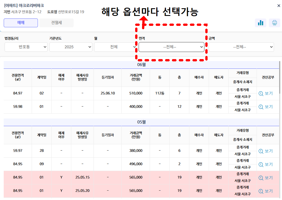 • 전용면적, 층수, 계약일 기준까지 꼼꼼하게 비교 필수