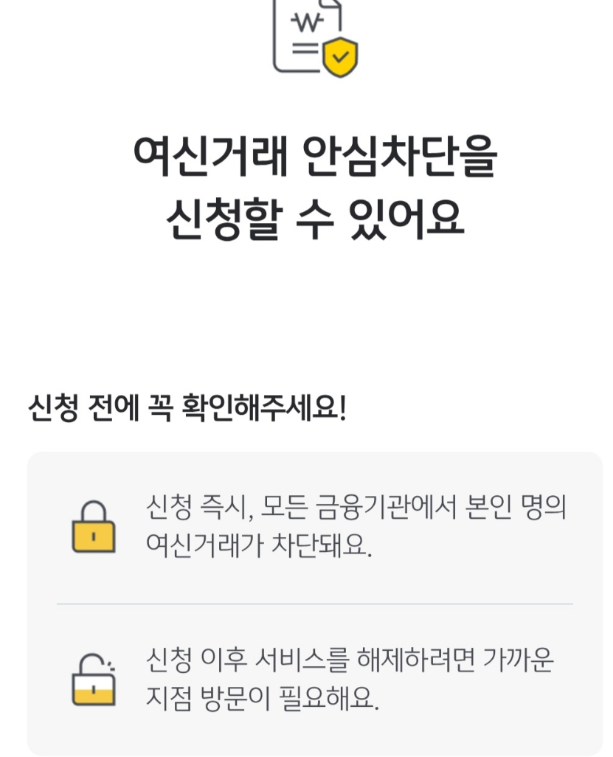 4. 카카오뱅크 여신거래 안심차단 해제 방법