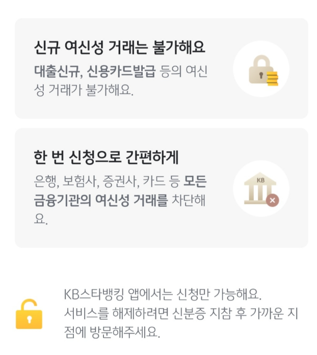 - 해제 시: 다시 정상적인 여신거래(대출, 카드 등) 가능