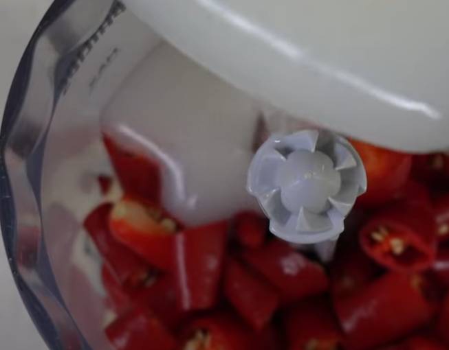 - 믹서에 마늘, 생강, 양파, 새우젓, 홍고추를 곱게 갈고
