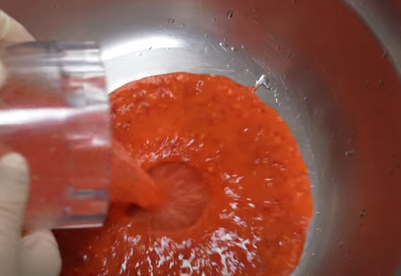 - 찹쌀풀 끓여서 식힌 뒤 양념과 고춧가루, 액젓 섞어 양념장 만들기