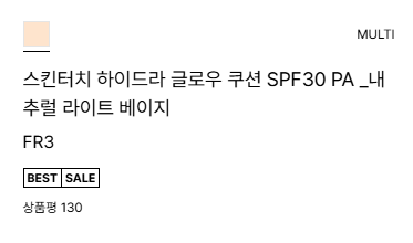 • 정식명칭: 스킨터치 하이드라 글로우 쿠션 SPF30 PA++