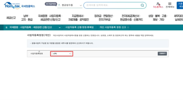 ▶ 신청 경로: 홈택스 바로가기 > 민원증명 > 사업자등록 정정신고