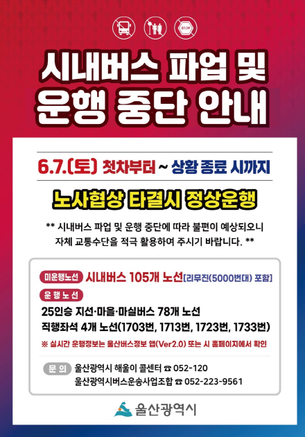 - 6월 7일 04:00부터 울산 시내버스 80% 멈춤.