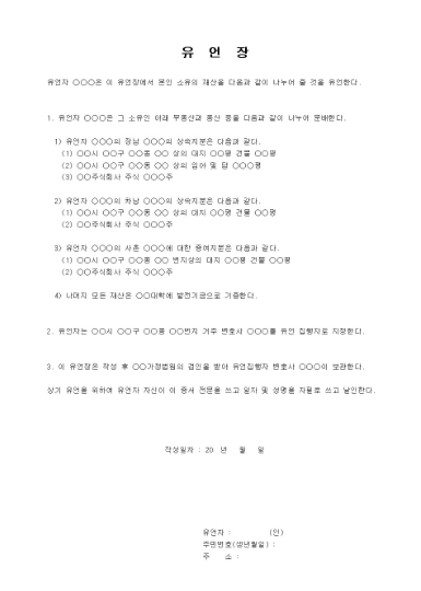 - 본인의 이름, 생년월일, 유언 내용, 작성일, 서명 등 빠짐없이 기재