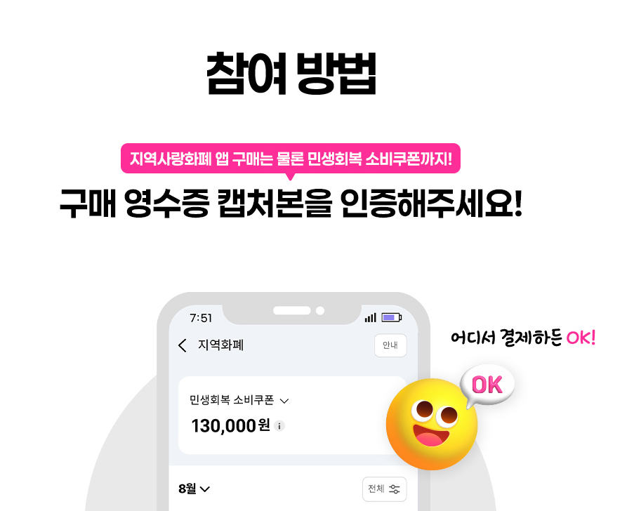 - 11월 30일까지 지역사랑상품권·민생회복 소비쿠폰으로 결제 시 10% 캐시백