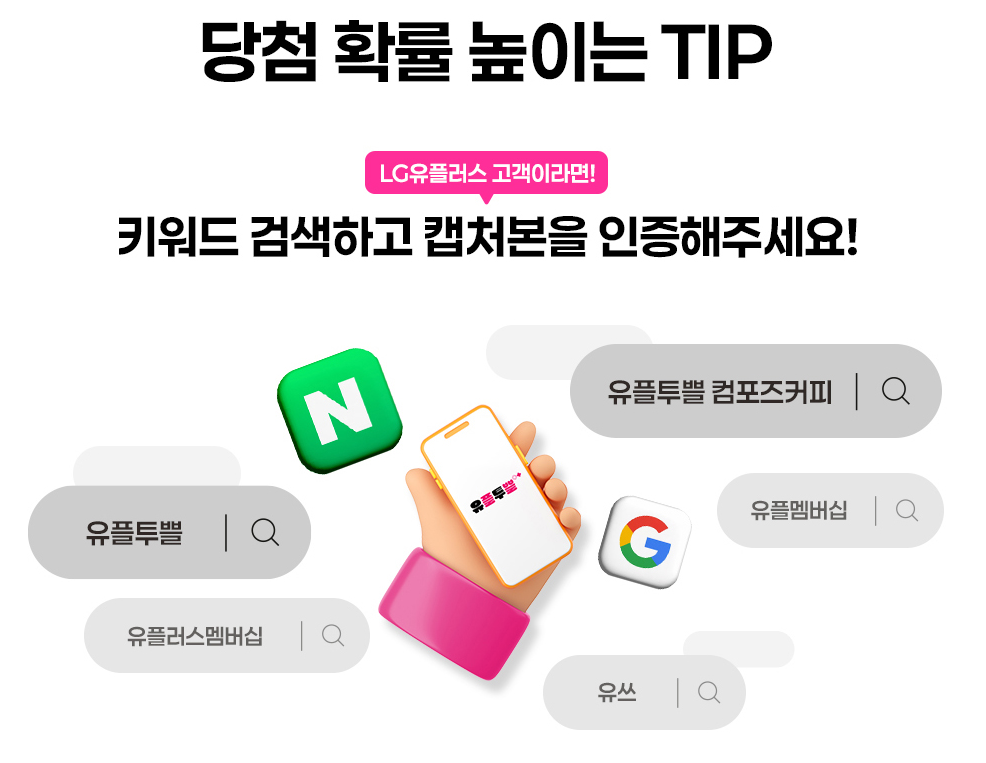 • 네이버·구글 검색 참여 : “유플투쁠 컴포즈커피” 검색 후 캡처 인증 시 당첨 확률↑