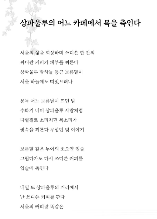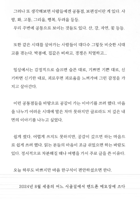 그의 글은 그래서 “잘 쓰려는 시”가 아니라, “살아내기 위한 시”입니다.