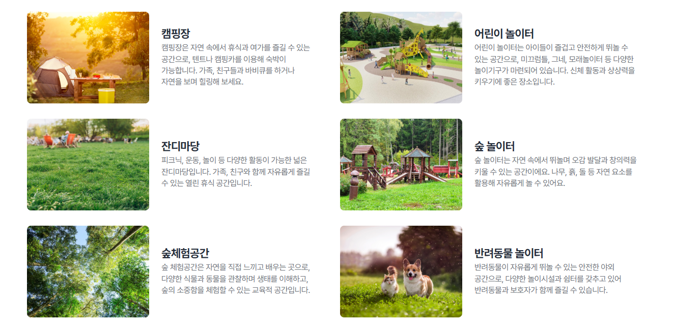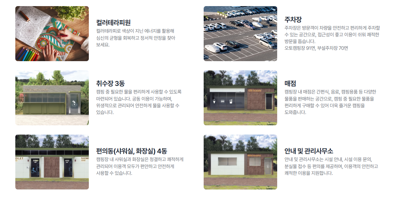 - 주차: 캠핑장 전용 주차장 마련 (사이트당 1대 가능)