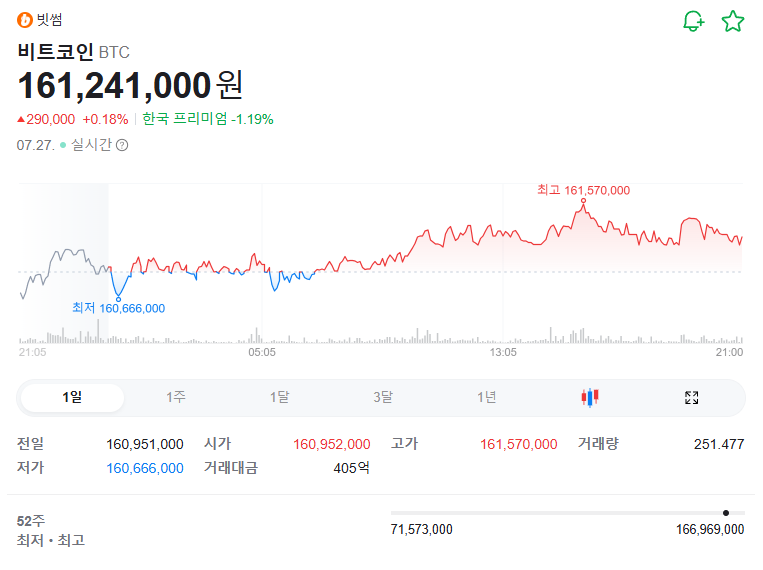 ③ 고가: 161,570,000원 / 저가: 160,666,000원