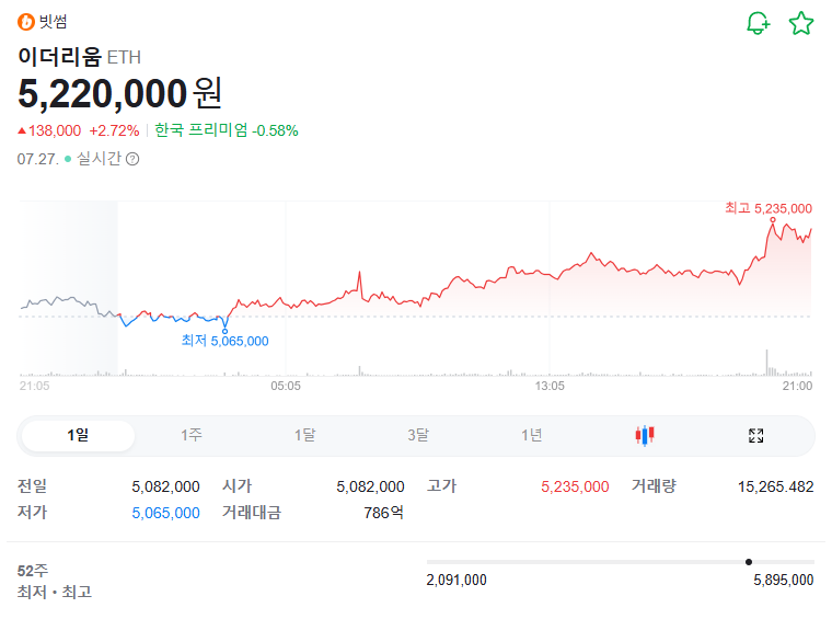 2025년 7월 27일 기준, 이더리움 시세가 514만 원을 돌파했습니다. 상승 배경에는 현물 ETF 기대감, 스테이킹 증가뿐 아니라 가스비(Gas Fee) 변동도 주요한 영향을 미쳤습니다. 비트코인과 비교되는 구조적 차이까지 함께 정리해봅니다.