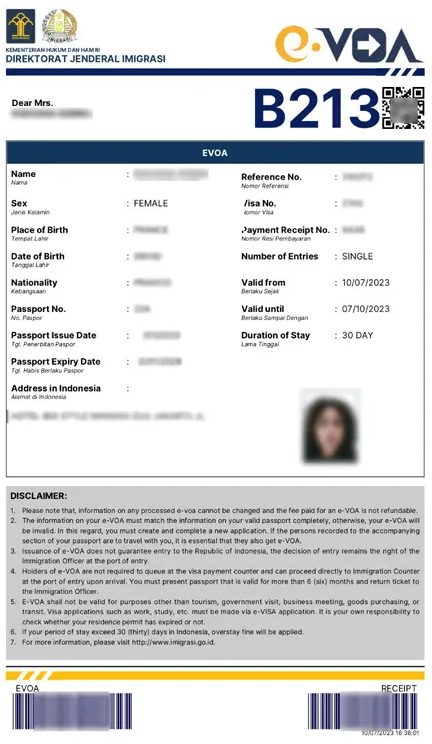 ① eVOA (전자도착비자)는 최대 30일까지 체류 가능하며, 인도네시아 현지에서 1회에 한해 연장 신청이 가능합니다.