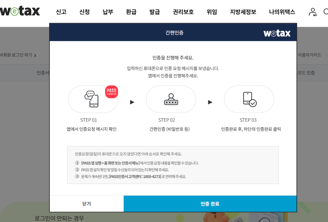● 위택스 로그인 → 자동이체 신청 메뉴