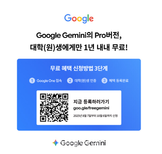 구글이 대한민국 대학생·대학원생을 대상으로 ‘제미나이 2.5 프로’가 포함된 구글 AI Pro 요금제를 1년간 무료 제공합니다. 신청 방법부터 혜택, 활용 팁까지 지금 바로 확인해보세요.