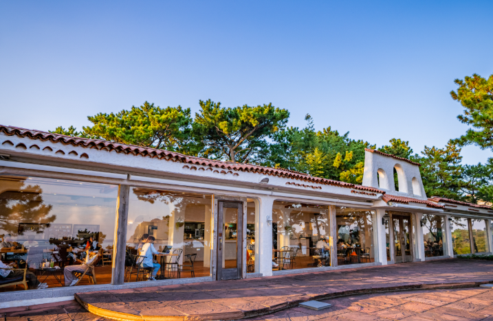 - 카페는 통유리로 바다 조망 가능하며, 야외·실내 좌석 구성