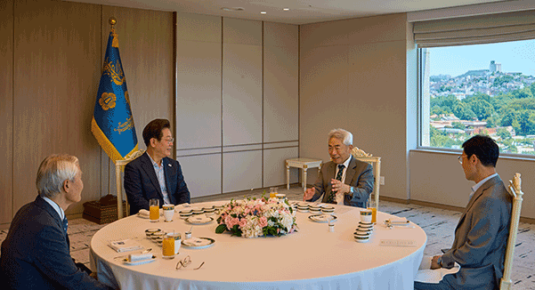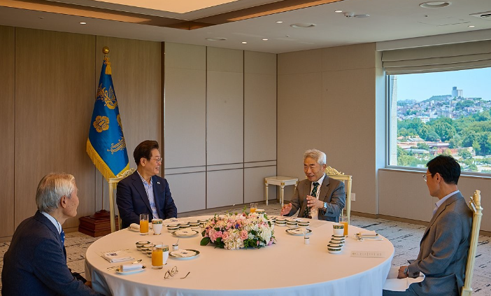 이재명 대통령은 2025년 7월 11일 용산 청사에서 조갑제·정규재 전 주필과 약 2시간 동안 오찬을 가졌습니다.