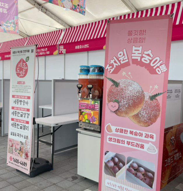 음식 부스: 복숭아 음료, 디저트, 떡 등 다양한 복숭아 제품 직거래 및 시식 기회 제공