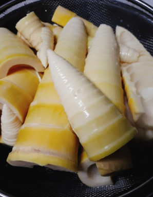 - 삶은 죽순을 찬물에 담가 아린 맛을 제거합니다.