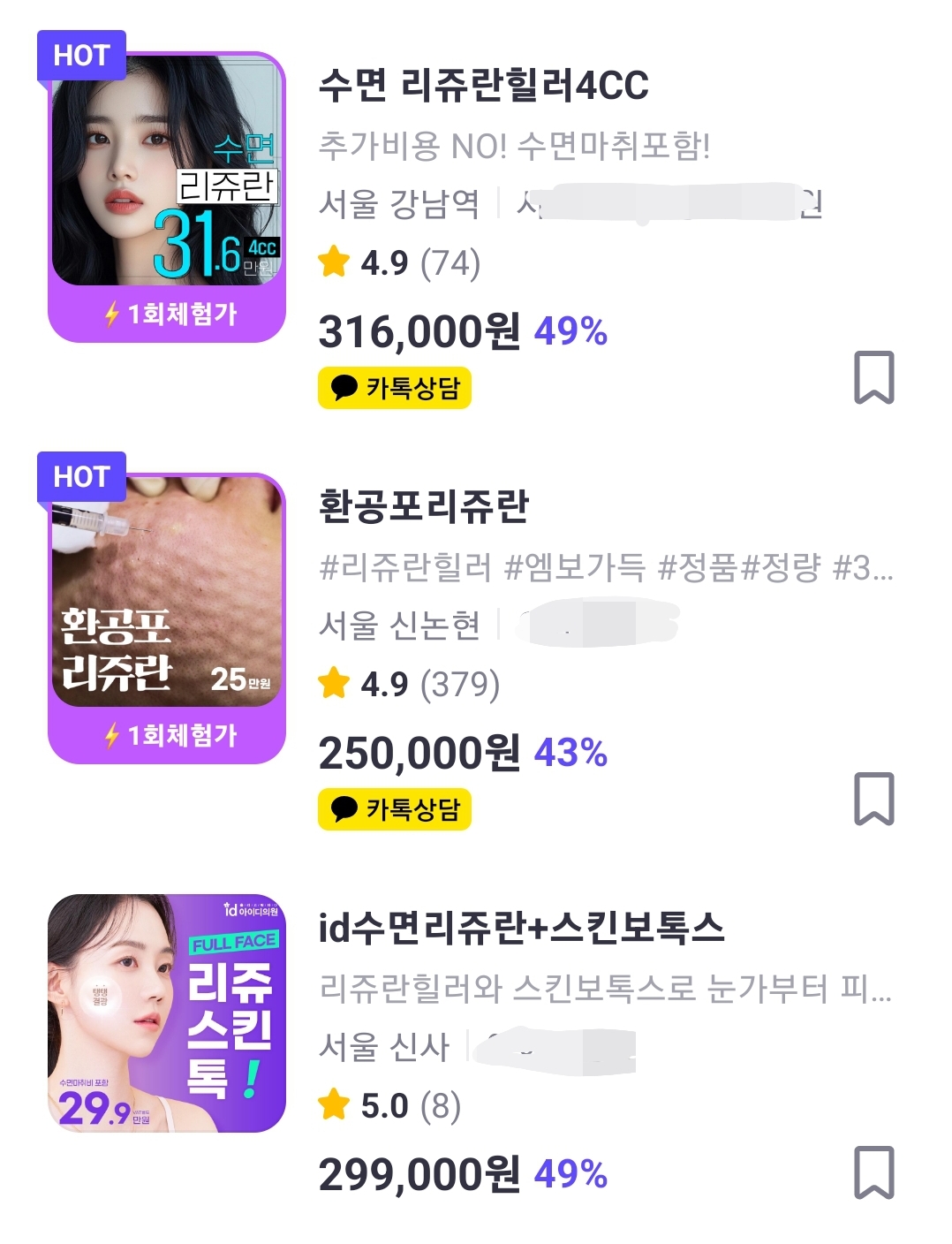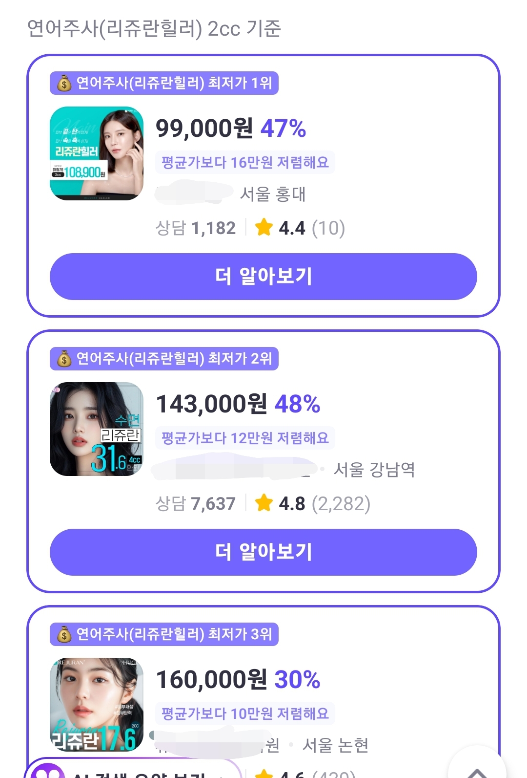 4-2. 리쥬란 가격대 비교