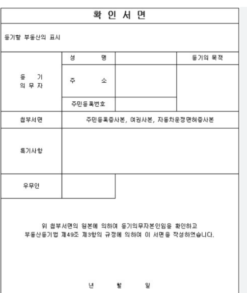- 확인서면 작성을 위해서는 반드시 본인이 직접 등기소를 방문하거나, 공인된 대리인을 통해 위임장과 신분증 사본을 함께 제출해야 합니다.