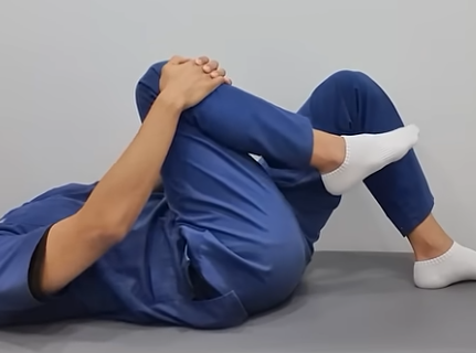 ① 바닥에 누워 한쪽 무릎을 가슴 쪽으로 당기고 10초 유지