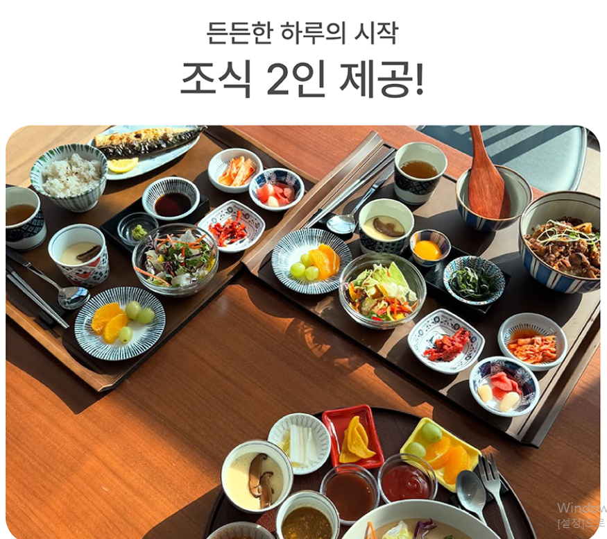 - 17,000원×2인 = 34,000원인 조식을 무료로 이용 가능하며,