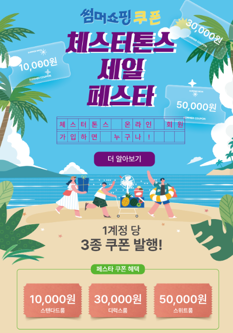 체스터톤스 공식 사이트(allthatstay.com)에 회원 가입만 해도 3종 쿠폰이 자동 발급됩니다 (7.4~9.30 발급, 12.31까지 유효).
