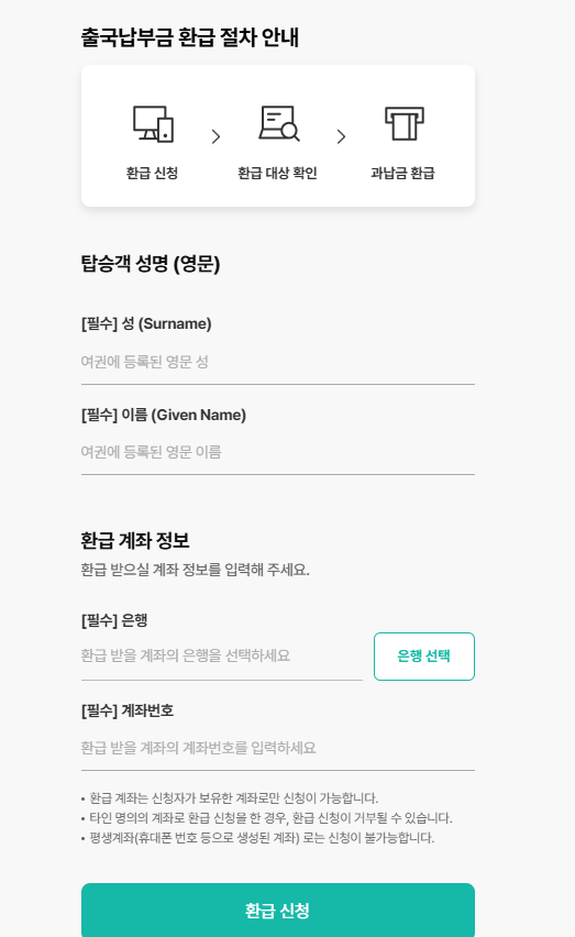 - 여객연령: 만 2세 이상이면 환급 대상 가능