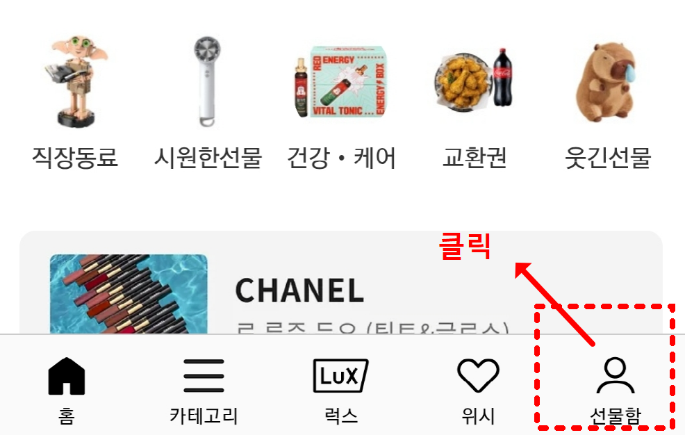 ② 선물하기 → 하단의 선물함 클릭