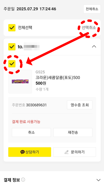 2. 보낸 선물 취소하는 방법 (90일 이내 전제) 직접 해보기