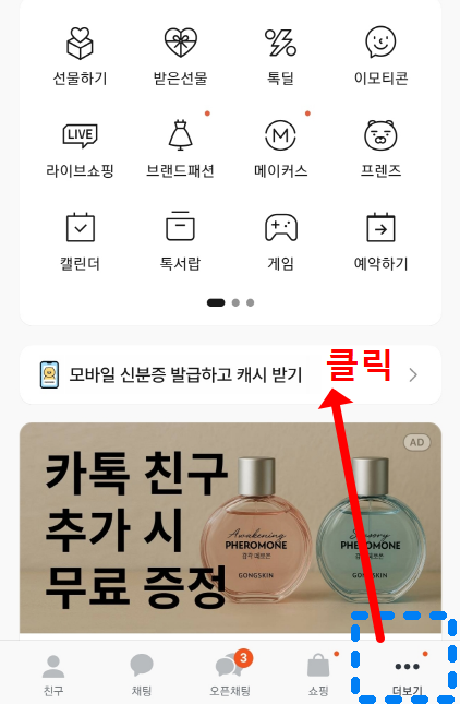 ① 카카오톡 → 더보기(점 3개) 메뉴 클릭