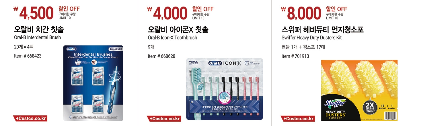 - 오랄비 아이콘X 칫솔 (9개입) – ₩4,000