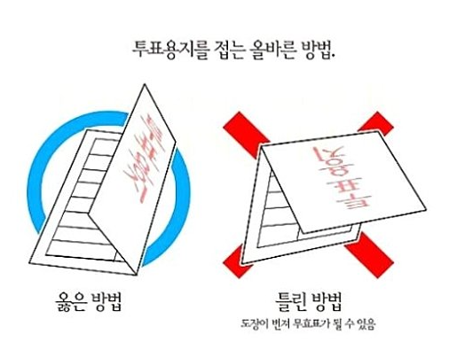 또, 기표 내용이 드러나거나 접는 과정에서 오염되면 무효표가 될 수 있습니다.