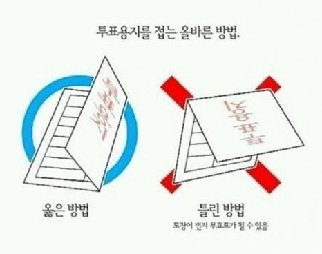 그래서 선관위는 정확한 접기 요령을 권장하고 있어요.