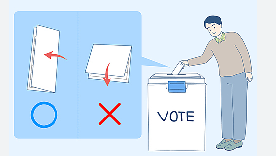 • 착각해서 한데 접거나 잘못 넣으면 무효표 처리될 수 있으니, 안내원의 설명을 꼭 들으세요!