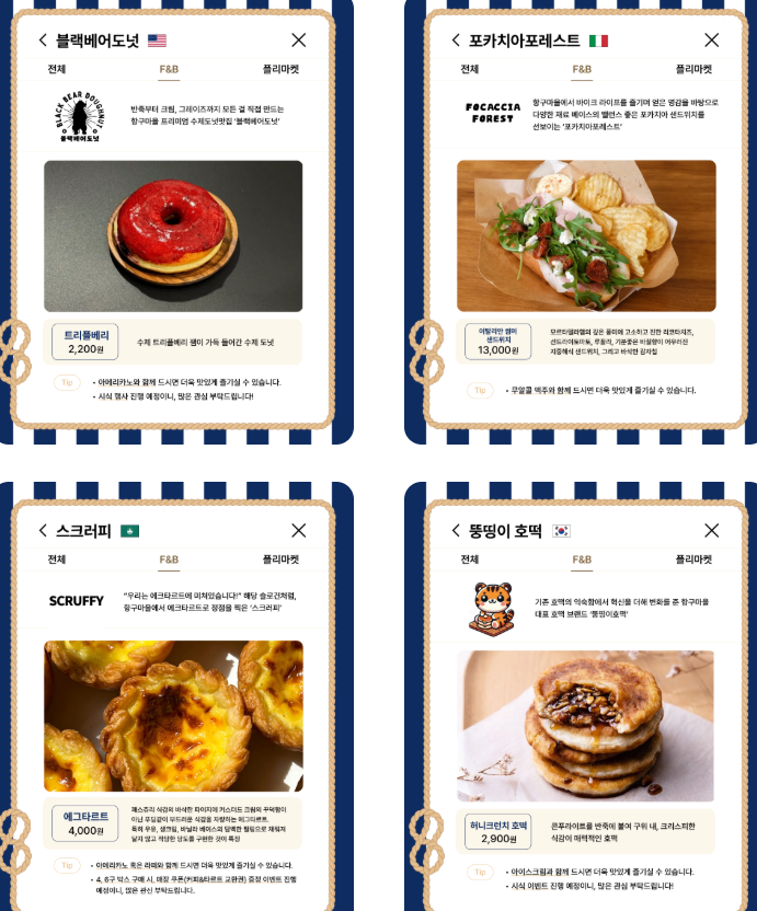 - 체험 클래스 (핸드메이드 만들기, 푸드 시식 체험 등)