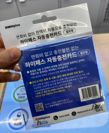 - POS(계산대)에서 직원에게 "하이패스 선불카드 충전해주세요" 요청