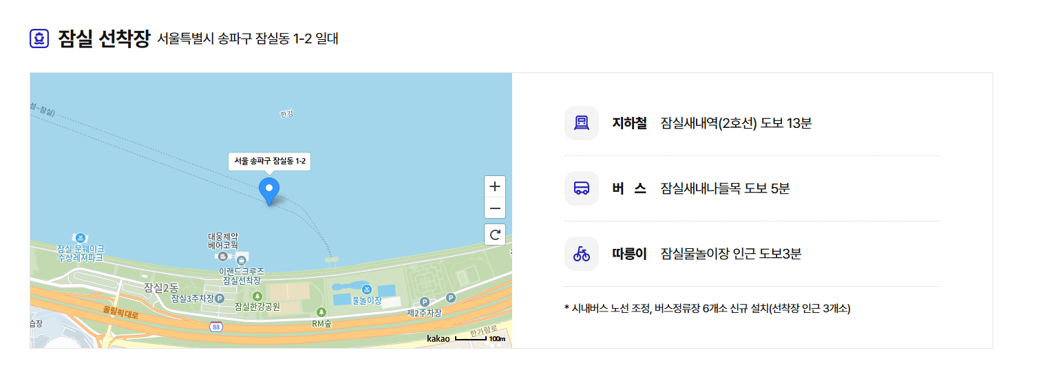 - 여의도 선착장: 여의도 한강공원 앞, 여의나루역 인근