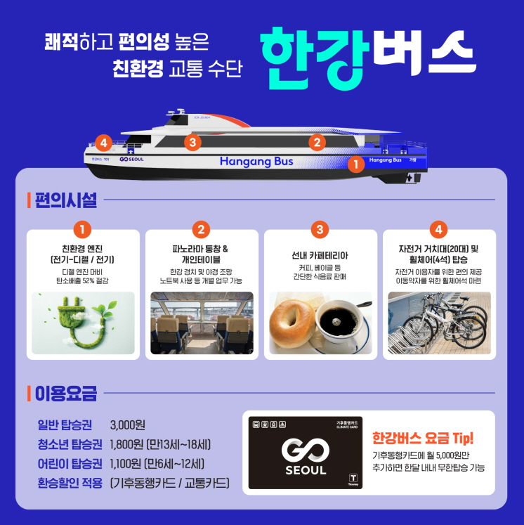 🟢 기후동행카드 보유 시 한강버스 무제한 이용 가능 (요금제: 70,000원)