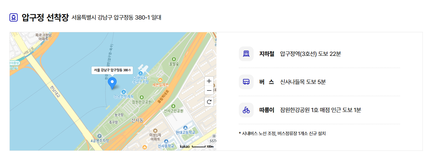 - 압구정 선착장: 한강시민공원 압구정지구