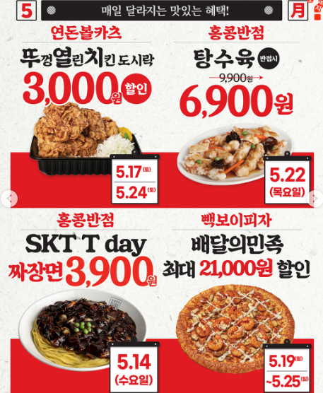 - 홍콩반점: 짜장면 세트 할인 프로모션 예정