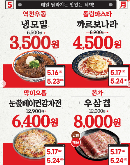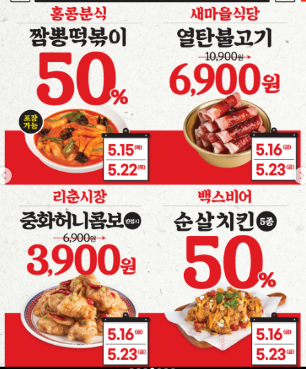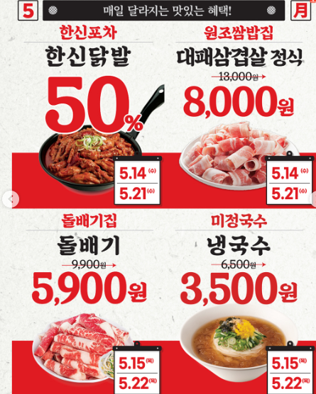 - 새마을식당: 일부 매장에서 열탄불고기 할인