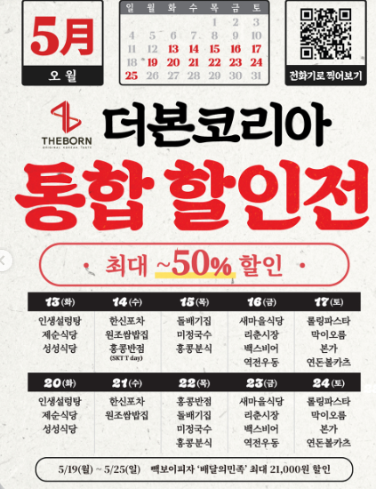 📌 ‘더본코리아 5월 할인 행사’는 브랜드별, 매장별로 다르기 때문에 반드시 홈페이지나 SNS 공지를 참고하시는 걸 추천드려요!