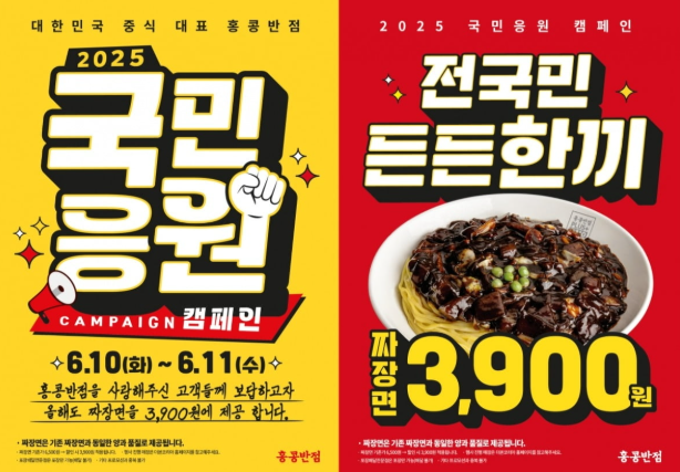 홍콩반점 할인행사 시작! 짜장면 3900원·빽다방 500원 6월 할인매장 총정리